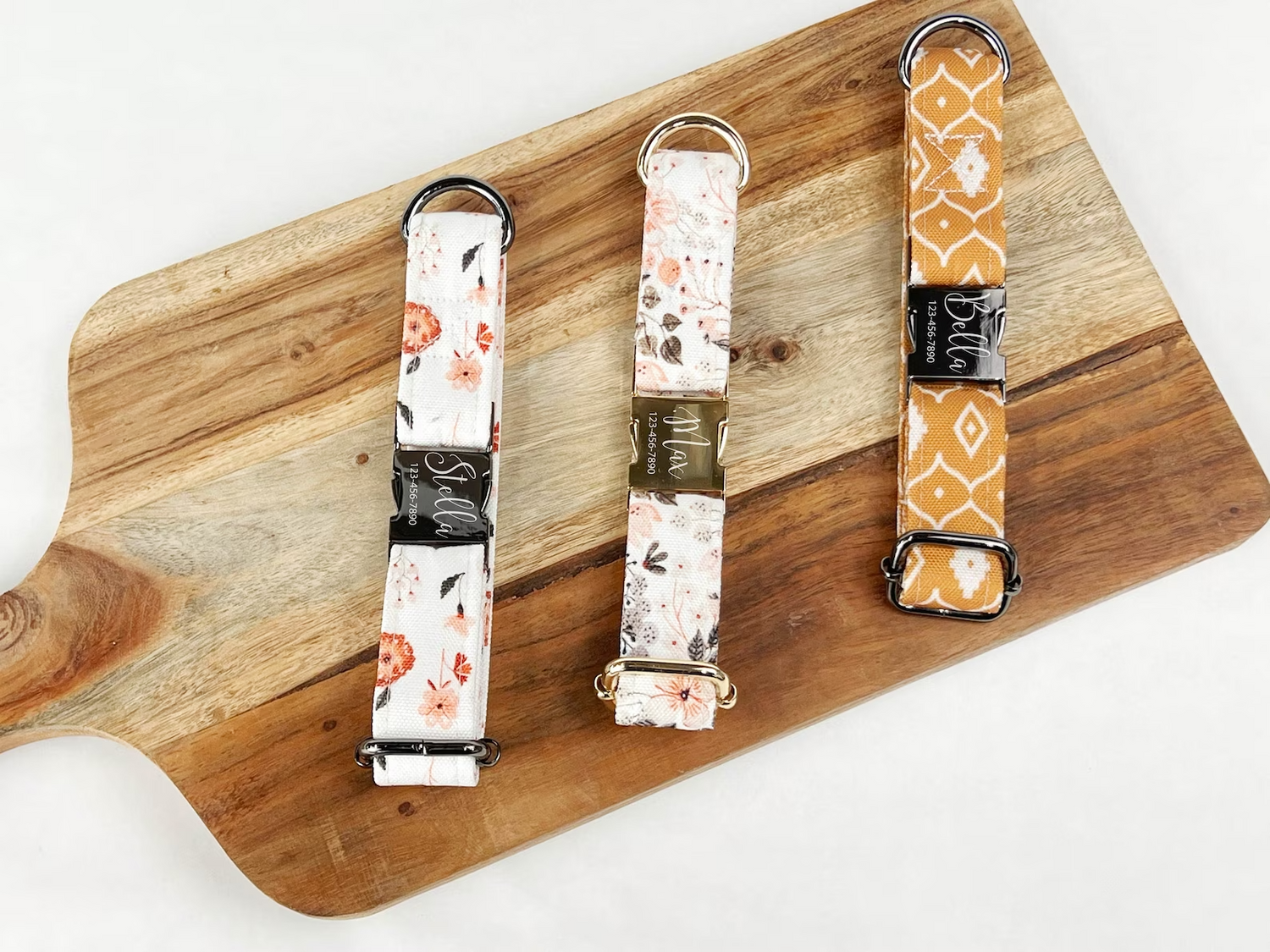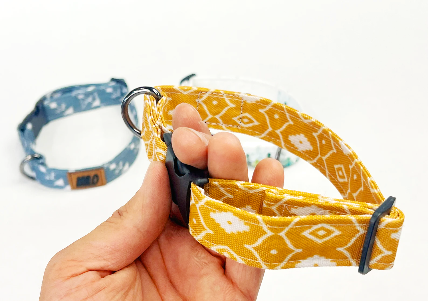 Welcome to our one-stop-shop for fully custom wholesale dog collars! We offer a unique and personalized experience for pet product sellers and brands. With our in-house printing capabilities, we can bring your creative visions to life by customizing fabrics with captivating patterns and designs. Our skilled team of artisans then carefully sews each collar, ensuring top-notch craftsmanship and durability. Whether you're looking to showcase your brand's logo or create one-of-a-kind designs that reflect your customers' individual styles, we've got you covered. From small boutiques to large pet stores, our wholesale options cater to businesses of all sizes. With our commitment to exceptional quality, quick turnaround times, and flexible order quantities, you can confidently stock your shelves with bespoke dog collars that will leave tails wagging. Partner with us today and provide your customers with collars that combine comfort, fashion, and the special touch that sets their beloved pets apart from the pack.