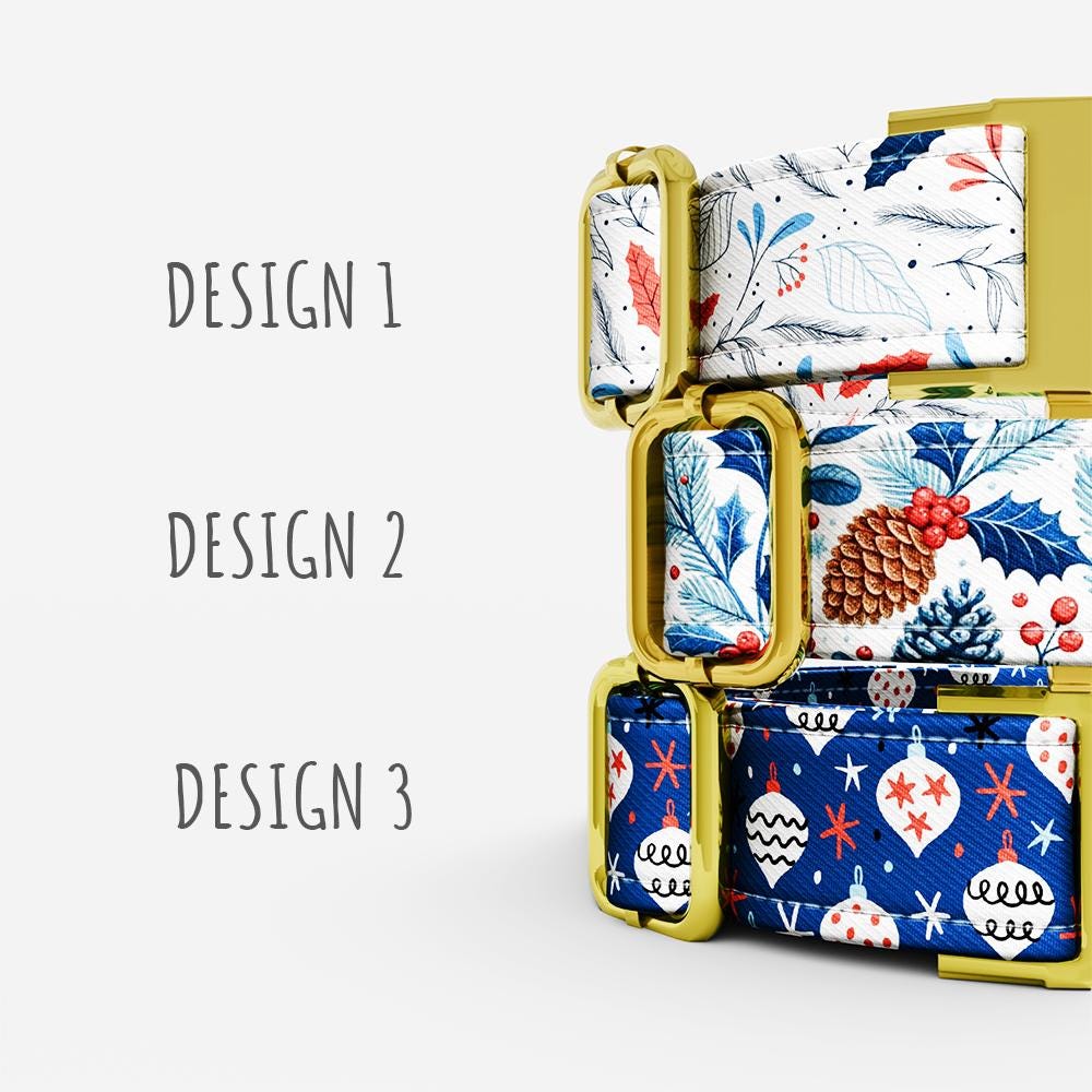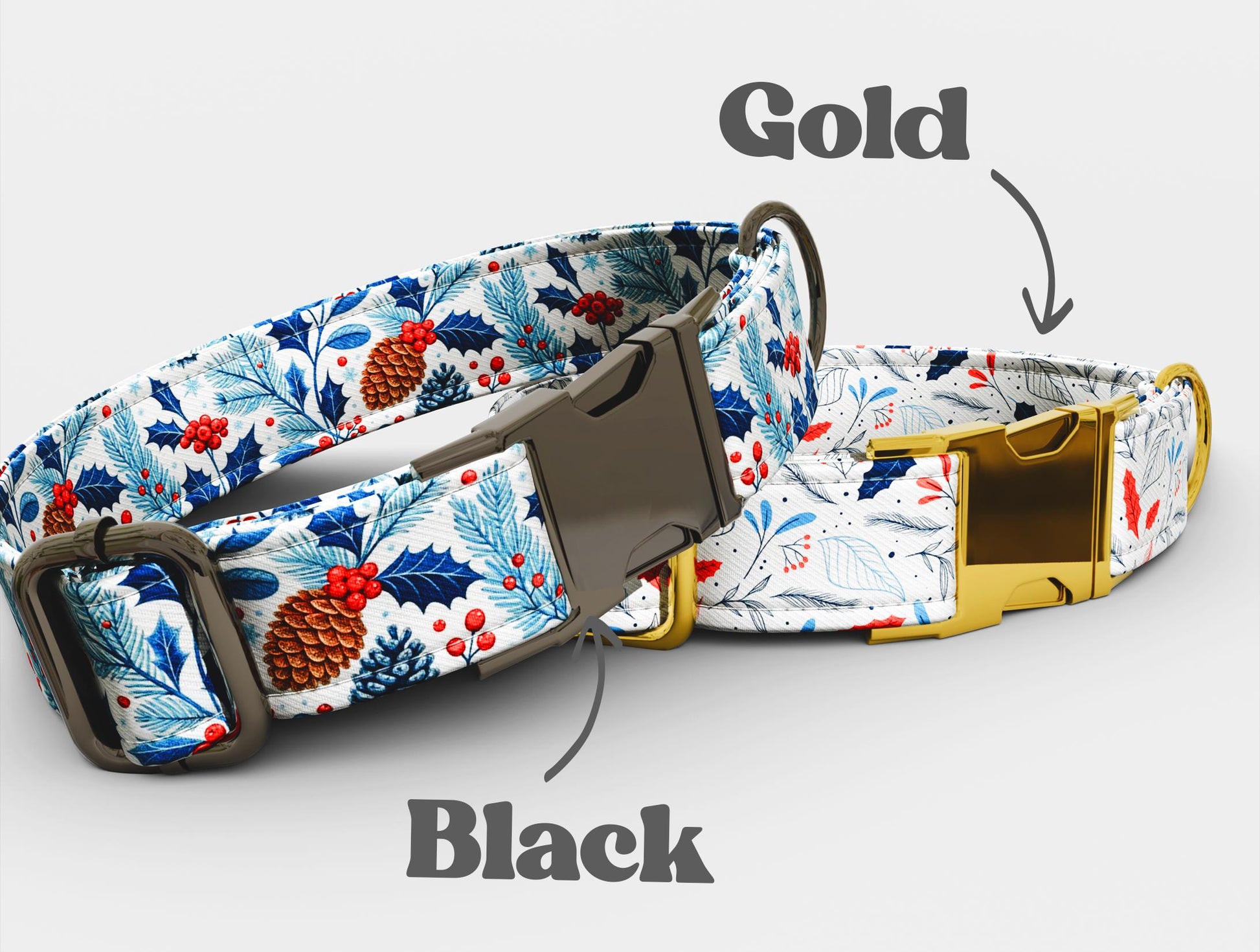 Blue Mistletoe Dog Collar: Holiday Theme, Adjustable, with Leash