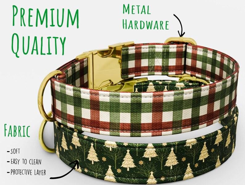 Christmas Plaid Dog Collar with Leash: Personalized Holiday Theme