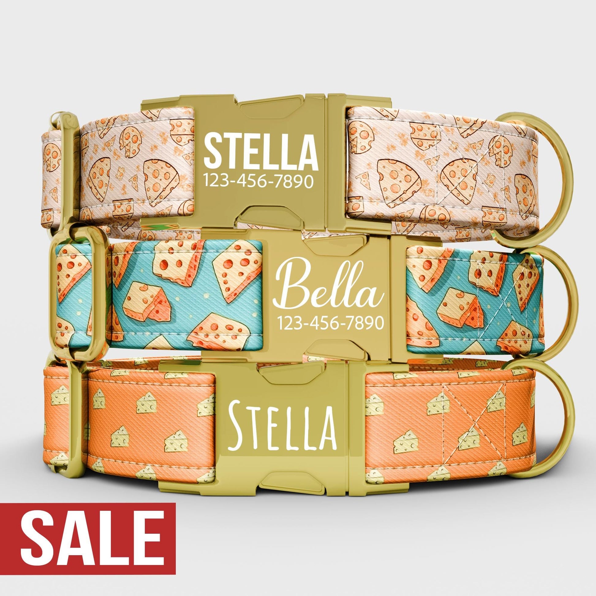 Custom Cheese Dog Collar with Leash: Adjustable, Handmade in USA