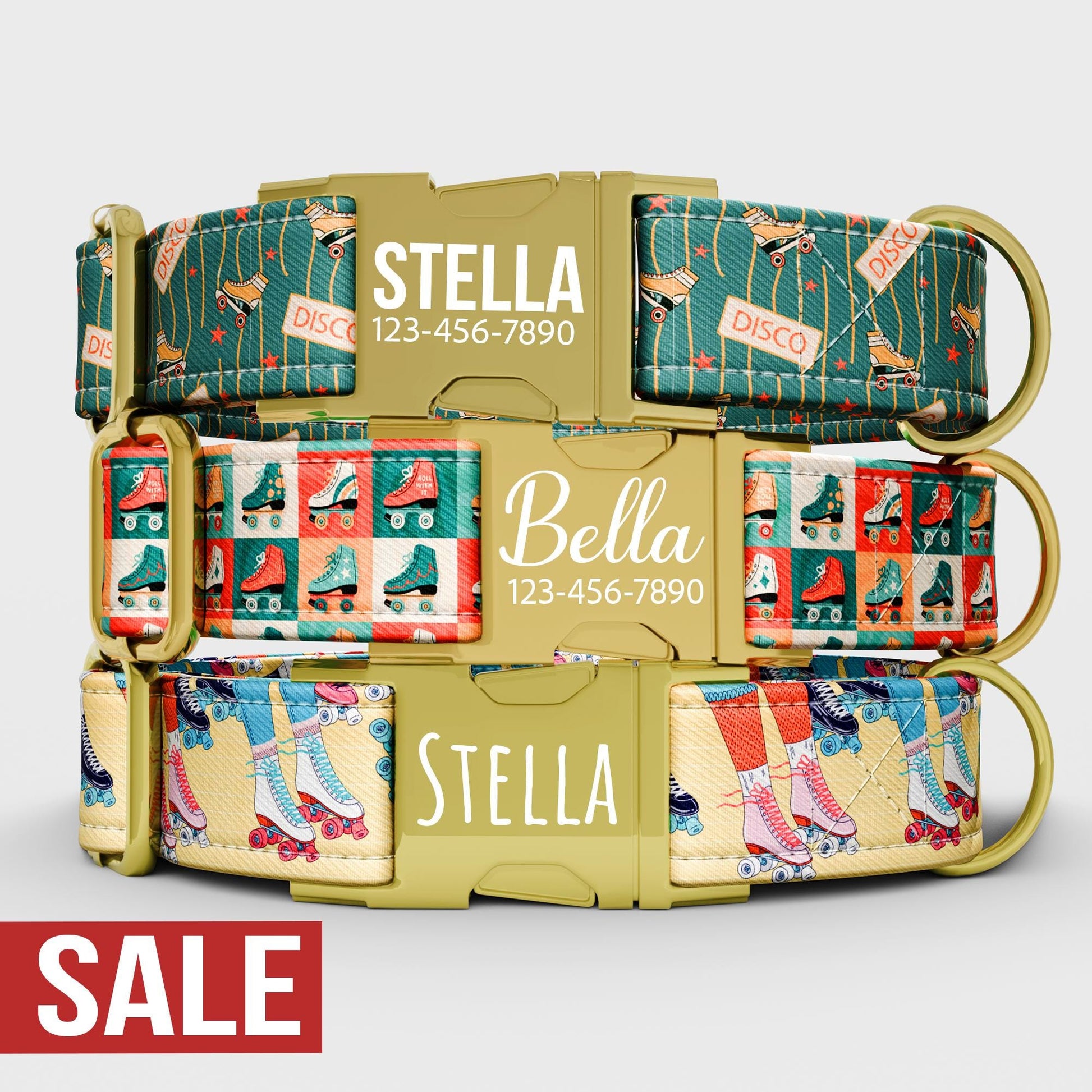 Personalized 80s Roller Skate Dog Collar with Leash: Custom Disco Theme
