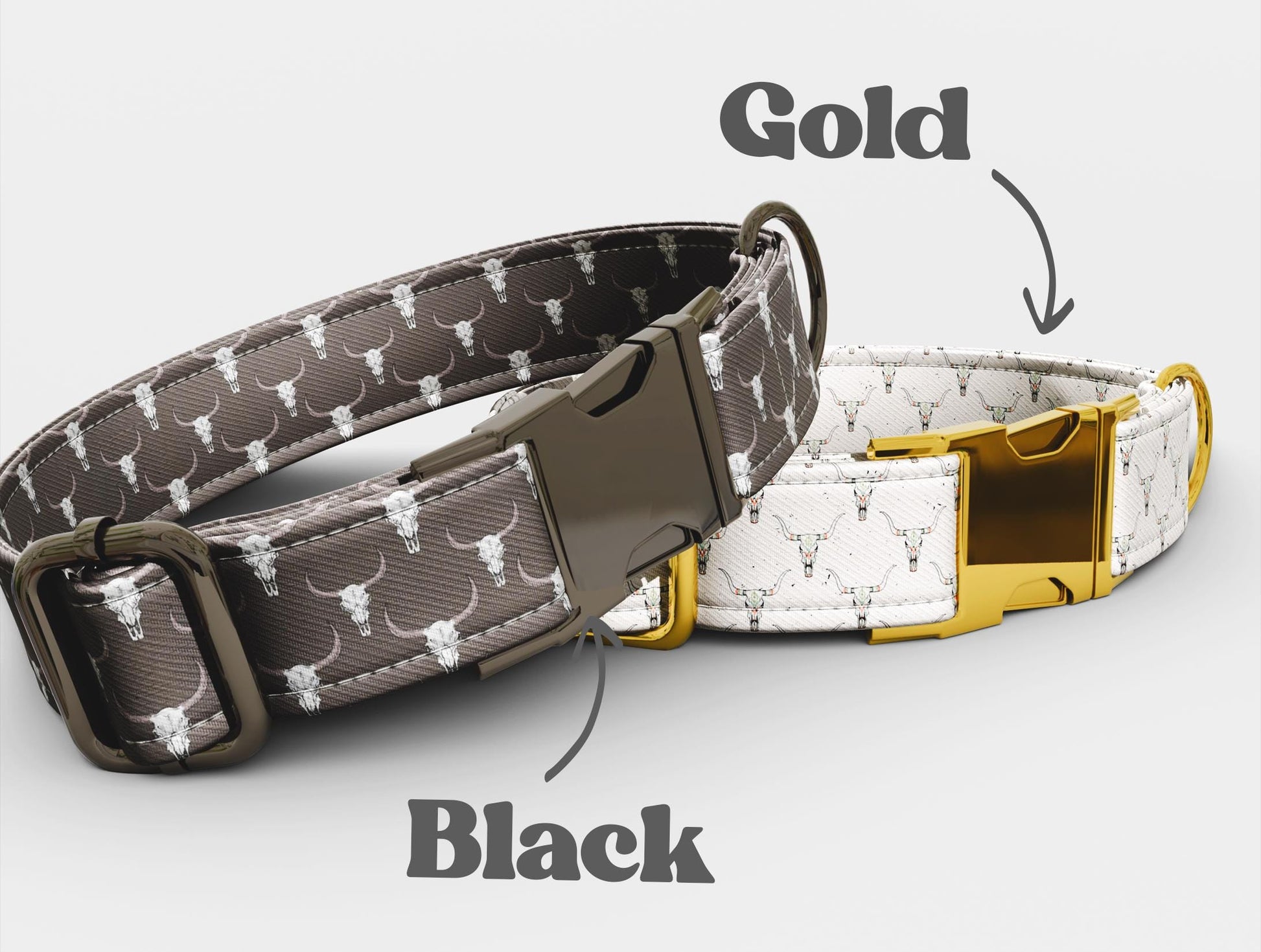 π Quick-release metal buckle in gold or black hardware