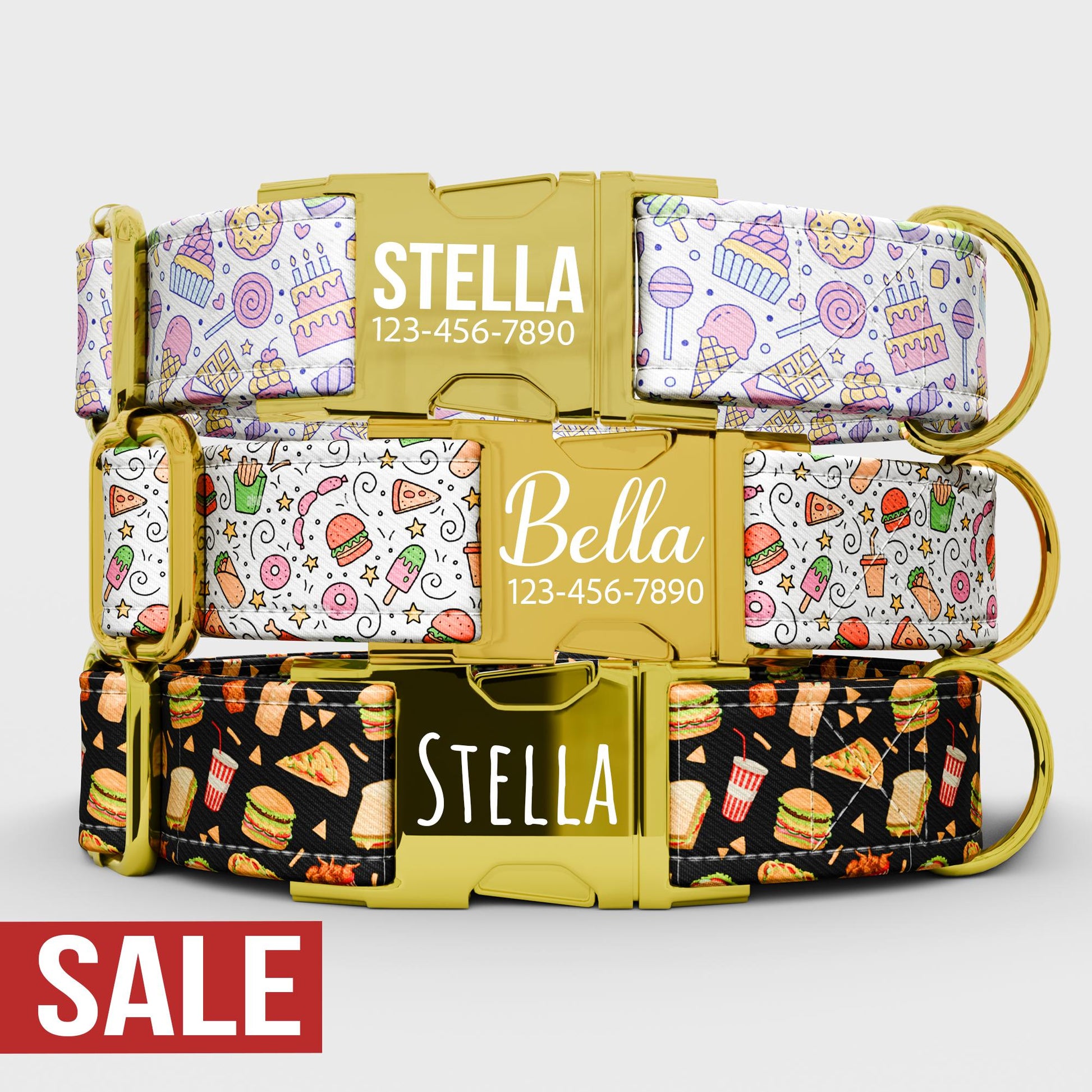 Personalized Cake & Burger Dog Collar with Leash: Custom Metal Buckle