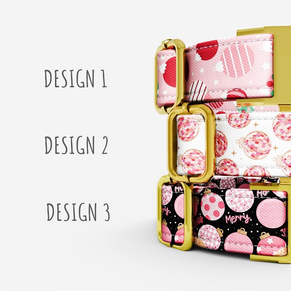 Personalized Christmas Dog Collar with Leash: Pink Holiday Theme, Adjustable Metal Buckle