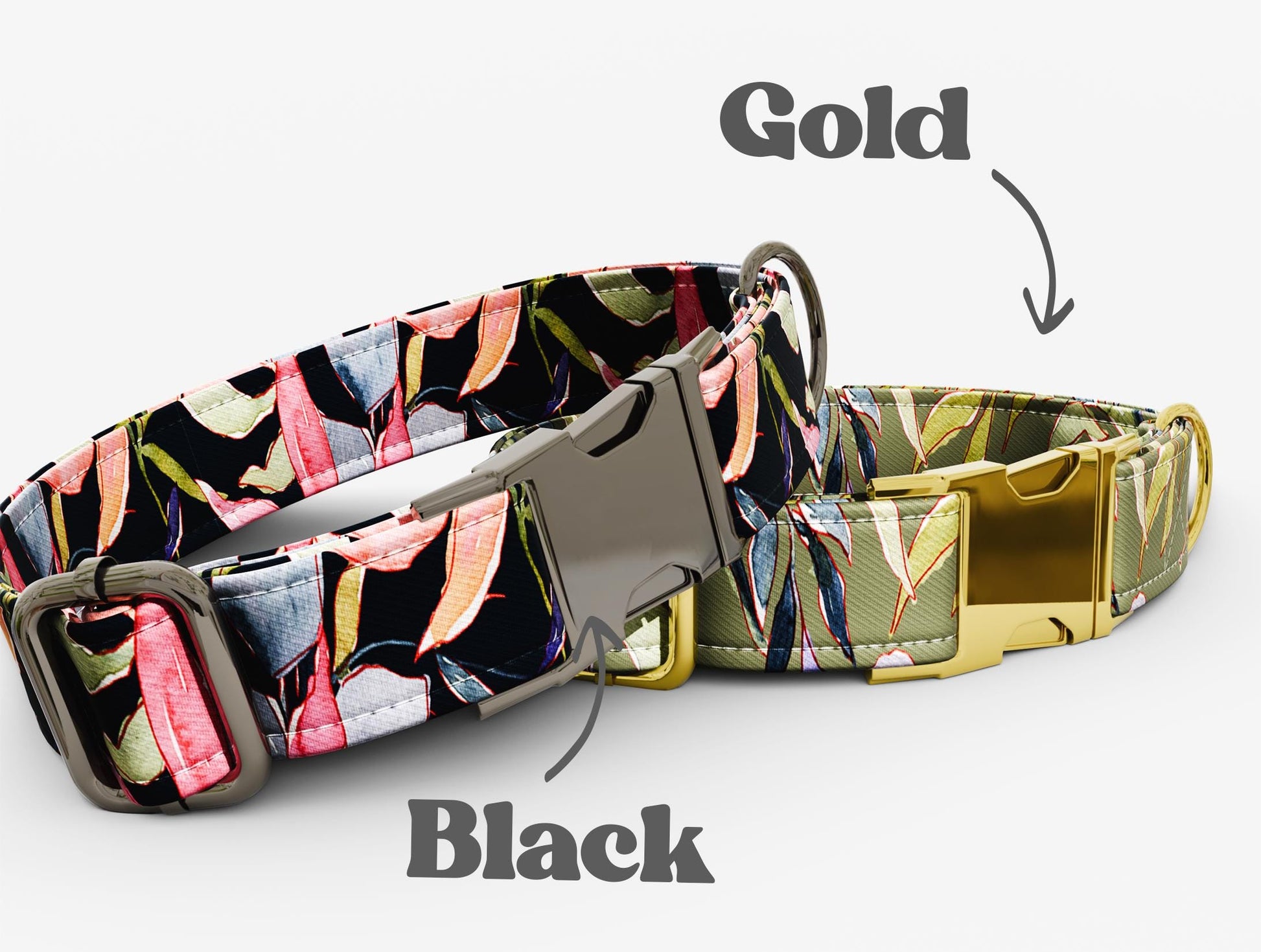 Personalized Floral Dog Collar with Leash: Metal Buckle, USA Handmade