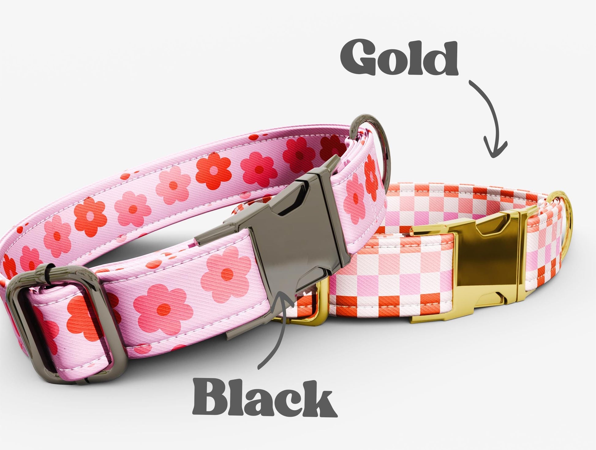 Personalized Pink Floral Dog Collar with Leash: Adjustable Bohemian Design