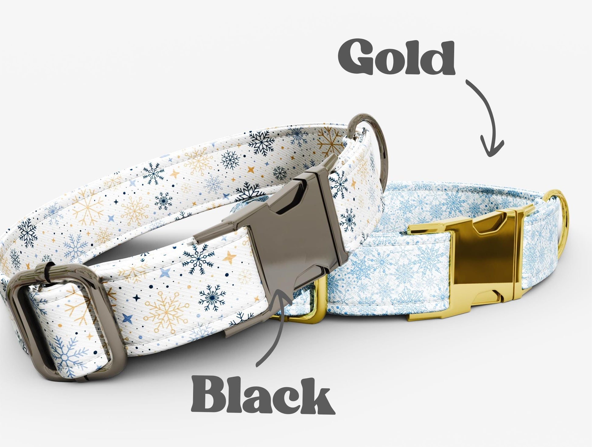 Personalized Snowflake Dog Collar with Leash: Winter Theme, USA Handmade