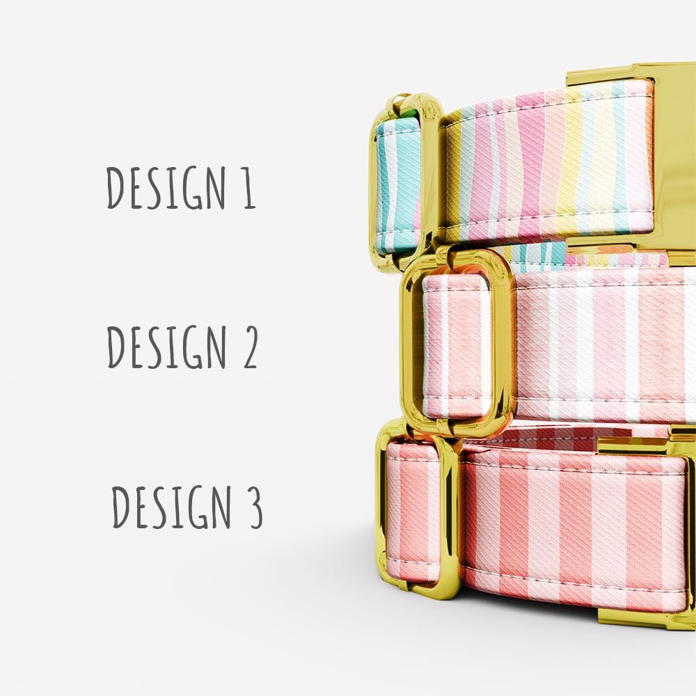 Personalized Striped Dog Collar with Leash: Handmade Water Repellent Fabric