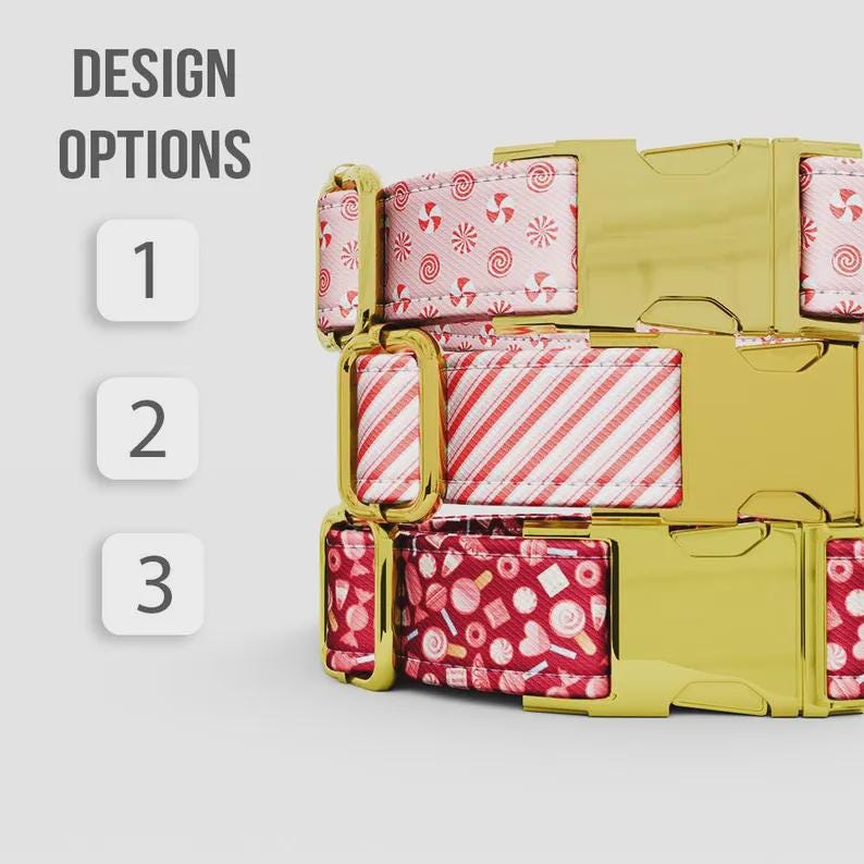 Pink Christmas Candy Dog Collar with Leash: Personalized Holiday Collar