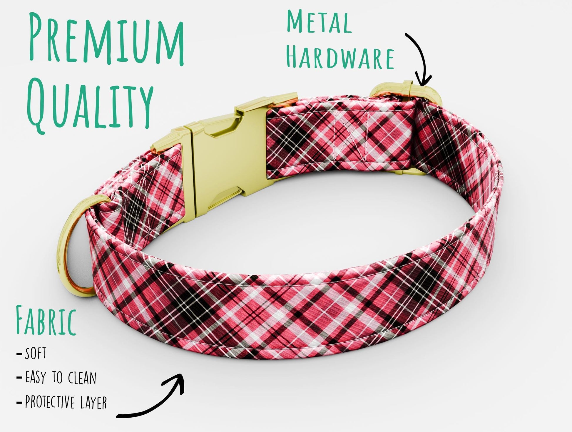 Pink Plaid Personalized Dog Collar: Custom Girl Puppy Gift