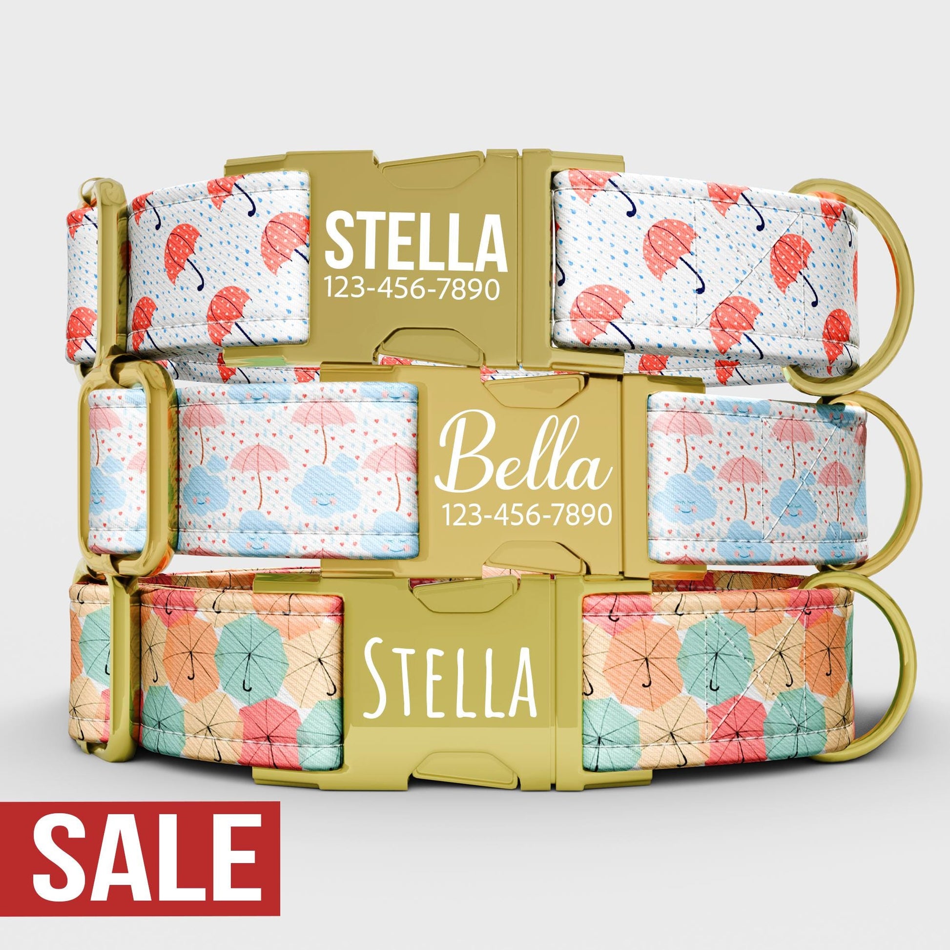Umbrella Dog Collar with Leash: Rain Theme, Adjustable, Water Repellent