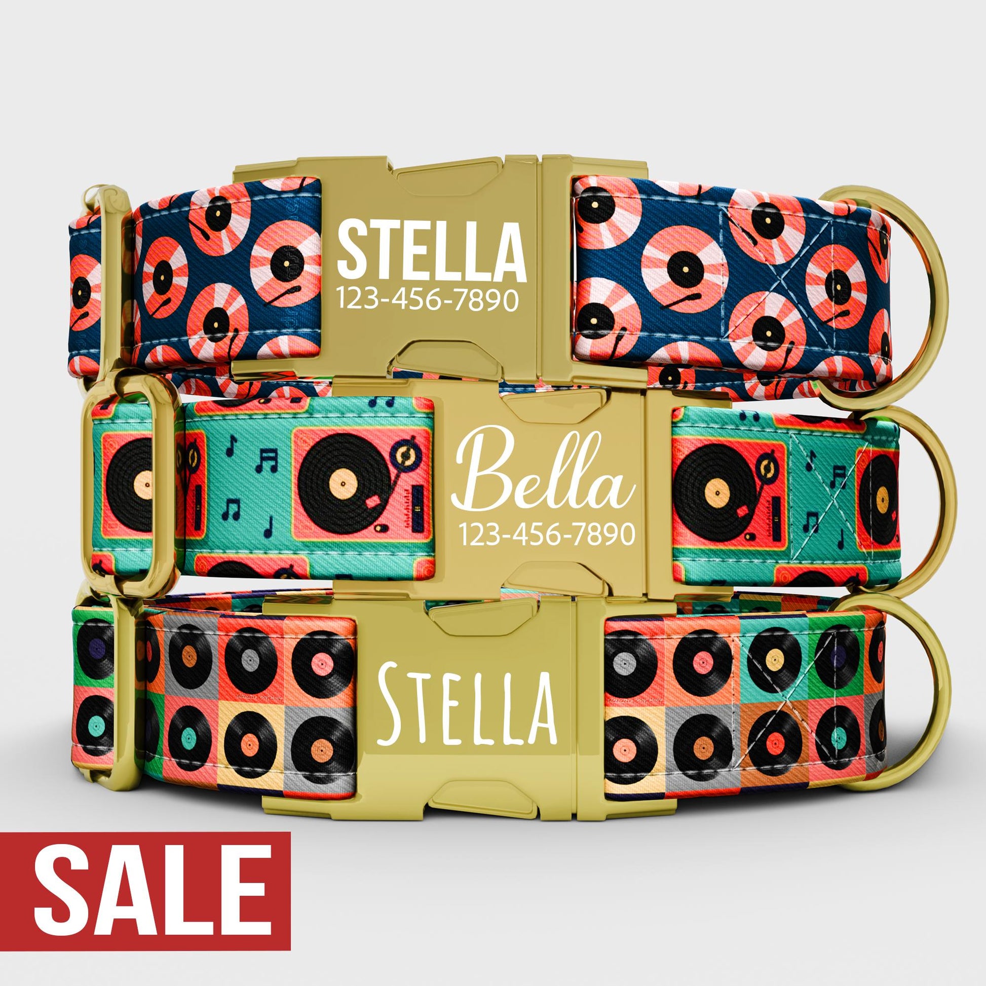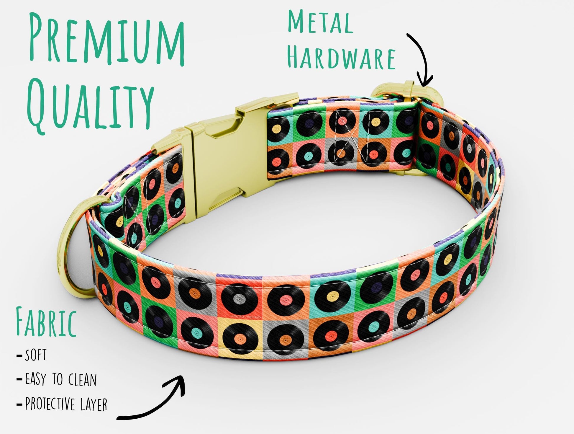 Vinyl Record Dog Collar with Leash: Personalized Music Theme, Adjustable Metal Buckle